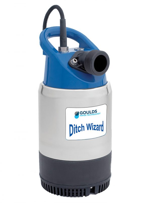Bomba sumergible marca Goulds con descarga de 2″ paso solidos de 3/8″ con motor electrico de 0.50 HP, 3450 RPM, monofasico, 115 volts.